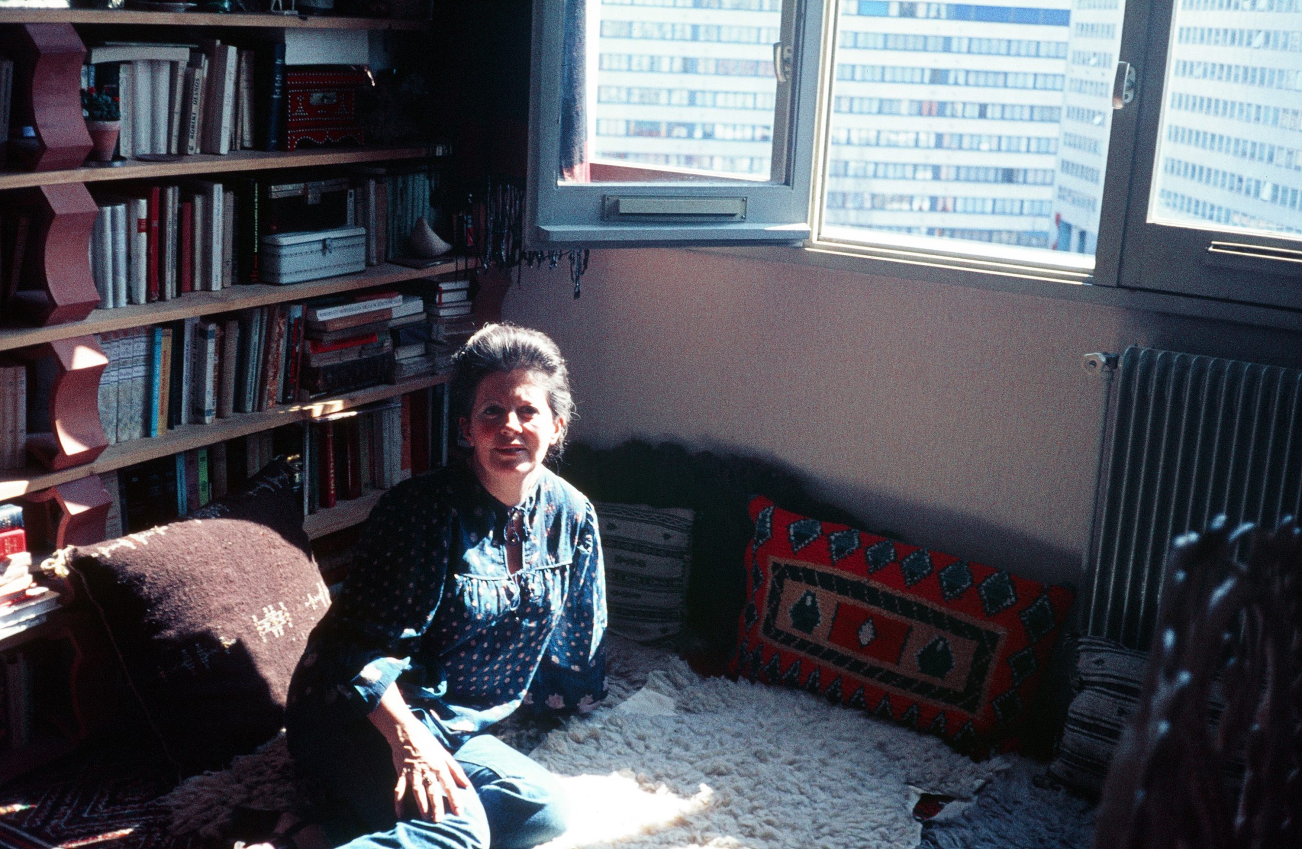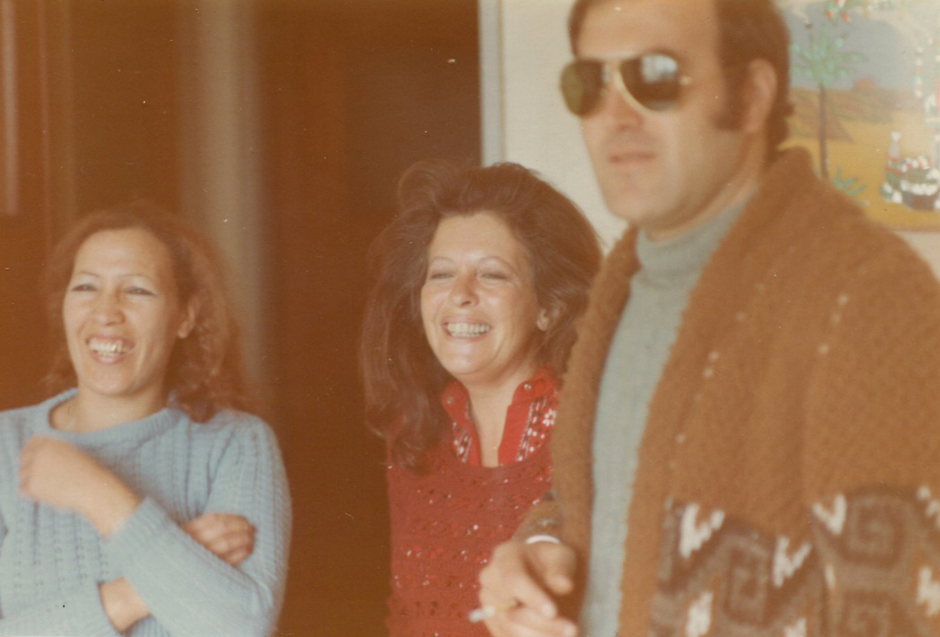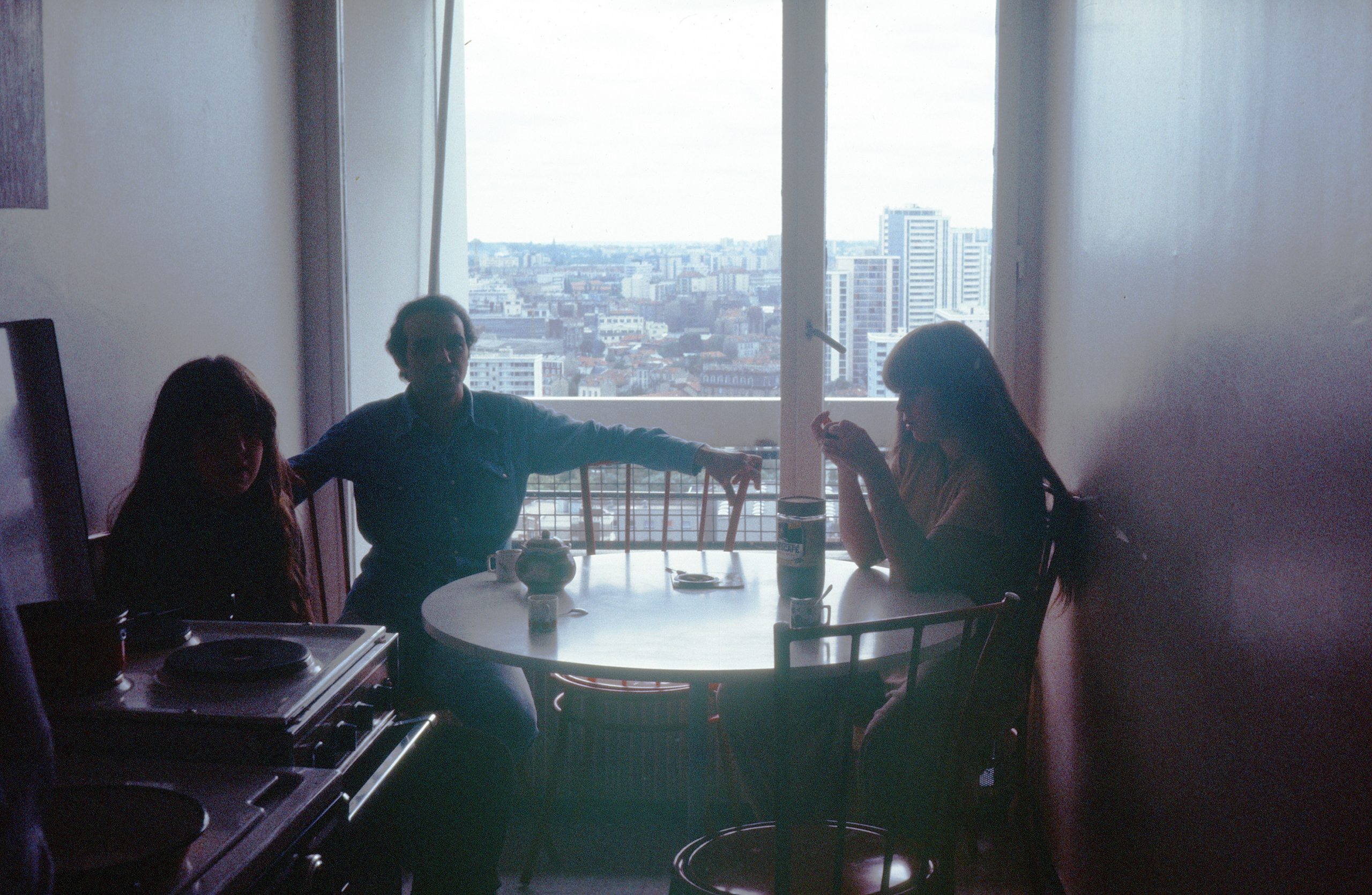 Catherine et Laurence avec une personne non identifiée, dans l’appartement de la rue Raymond Losserand, sd, autour de 1974.