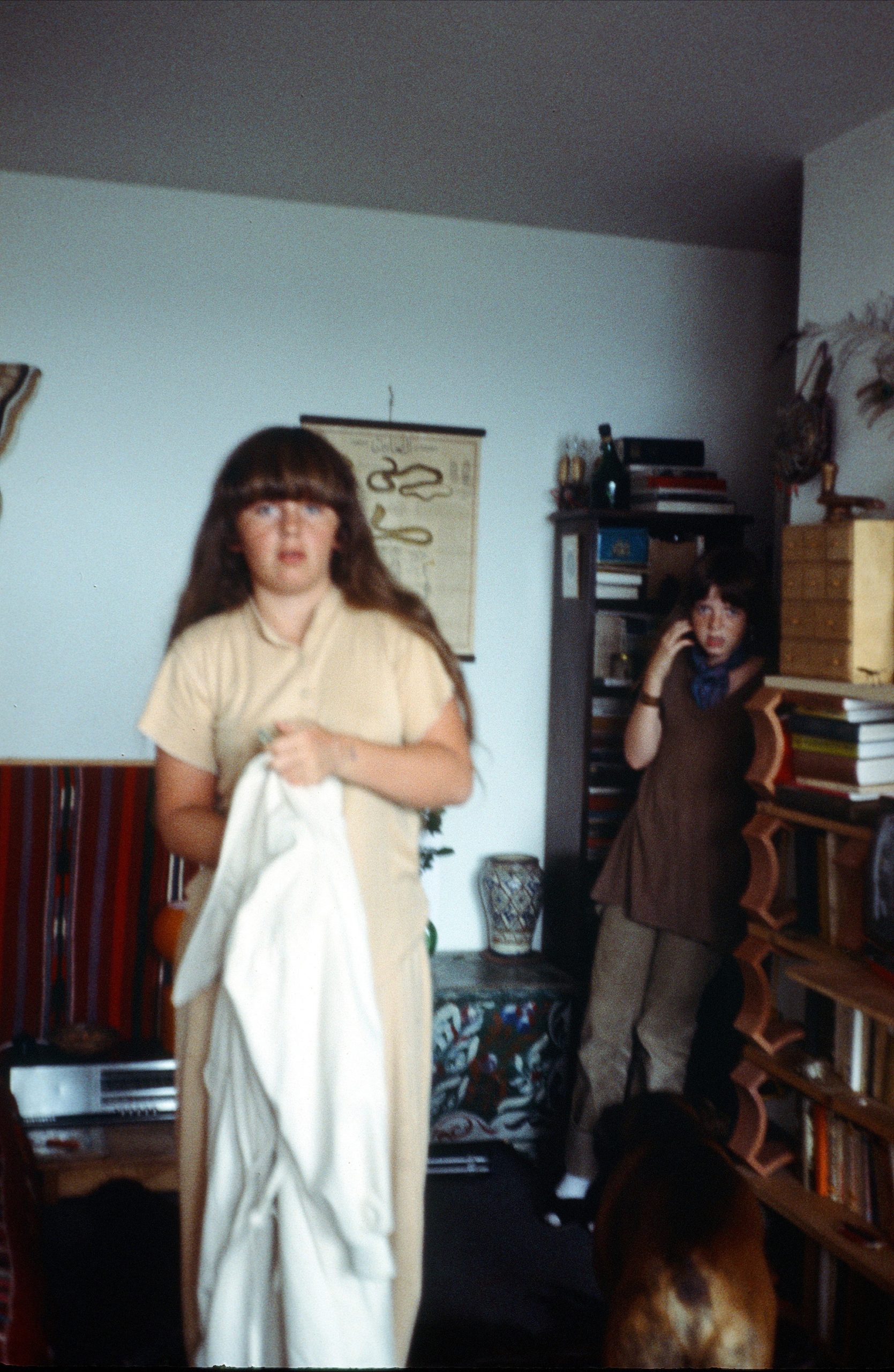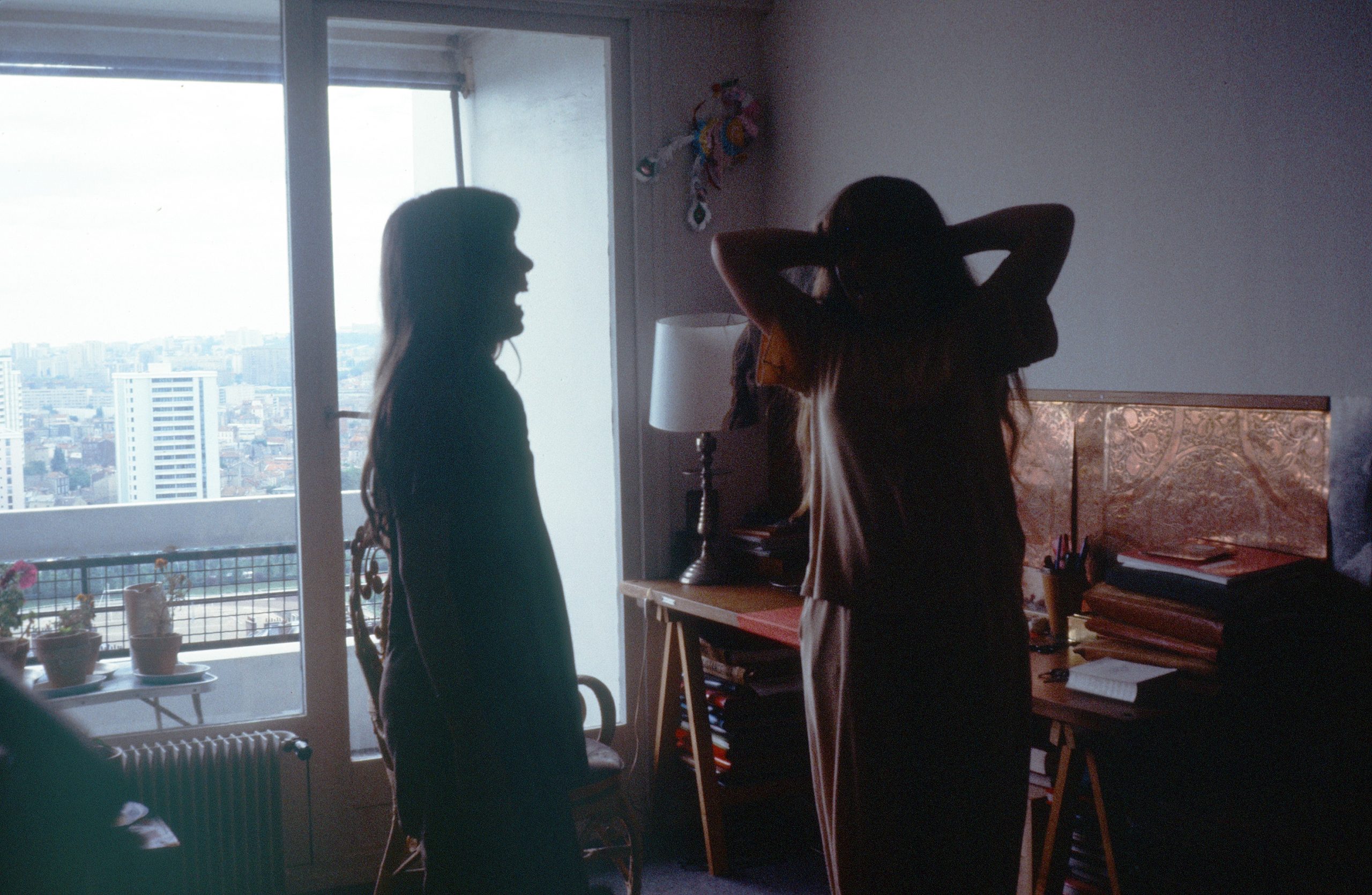Catherine et Laurence, dans l’appartement de la rue Raymond Losserand, sd, autour de 1974.